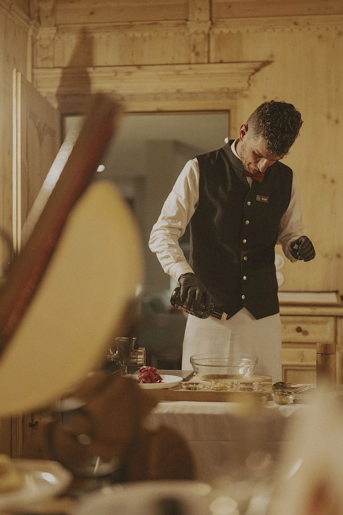 In der MIRAMONTI Stube geht es bodenständig zu. Mit Südtiroler Knödeln und Schlutzkrapfen, mit Beeren und Pilzen aus den Wäldern rundherum, mit Butter von der Alm und Schüttelbrot aus unserem Backofen. Was Bauern früher gegessen haben, was wir in Südtirol heute noch mögen.