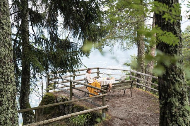 Wie aus einer perfekten Phantasie: Das MM Waldfrühstück in der intakten Naturidylle hoch über Meran. Nennen Sie uns Ihre Wunschzeit – wir arrangieren Ihren unvergesslichen kulinarischen Start in den Tag mit vorab ausgewählten Köstlichkeiten von Südtiroler Bauernhöfen und unseren Slow-Food-Produkten.