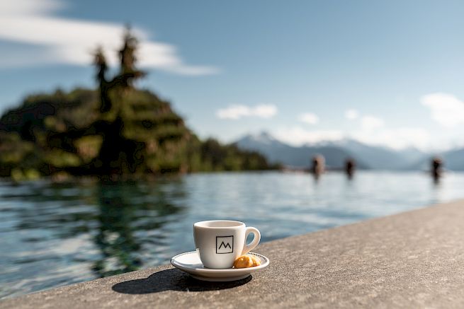 Bei Sonnenaufgang die ersten Längen schwimmen. In der klaren Bergluft. Und entspannt eintauchen in einen neuen MIRAMONTI-Tag. Für die frühen Vögel bieten wir brühfrischen Nespresso-Kaffee aus der Nespresso-Maschine am Pool, um die Lebensgeister zu wecken. Enjoy.