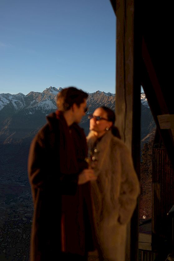 Die Vögel zwitschern, die ersten Sonnenstrahlen über den Bergspitzen erleuchten. Der Blick vom Zimmer auf die Berge der anderen Talseite, fasziniert.