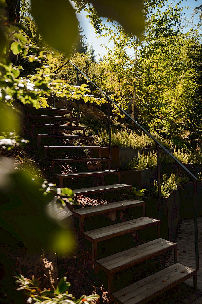 Im Schutz des Waldes geborgen, eröffnet sich auch hier ein Panorama, das Geist und Seele verführt. Dazu, sich ganz hinzugeben. Im Moment Glück zu finden. Und im Innenhof mit Whirlpool jenes Prickeln zu spüren, das so herrlich unbeschwert lächeln lässt.