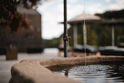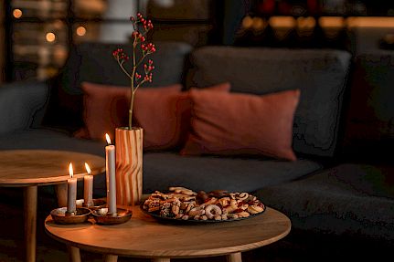 I materiali naturali scelti sono tutti tipici del luogo ( a km 0 ): legno di acacia e di abete, pietra e porfido per gli edifici e i pavimenti. Questi, insieme ai tessuti chiari in fibra naturale - molti di Kvadrat - e agli ambienti luminosi, contribuiscono a creare un’atmosfera rilassante e accogliente. Stile minimal anche per gli arredi distribuiti nei vari ambienti: mobili custom made in legno locale, pezzi di design di &tradition, lampade di Flos e letti di Hästens.