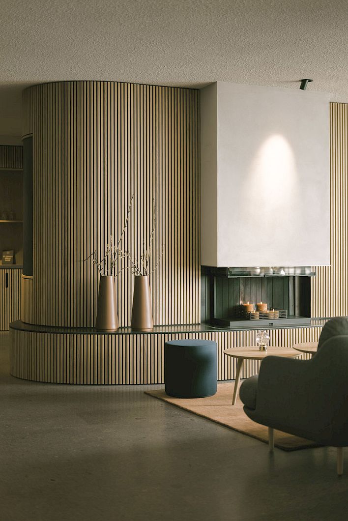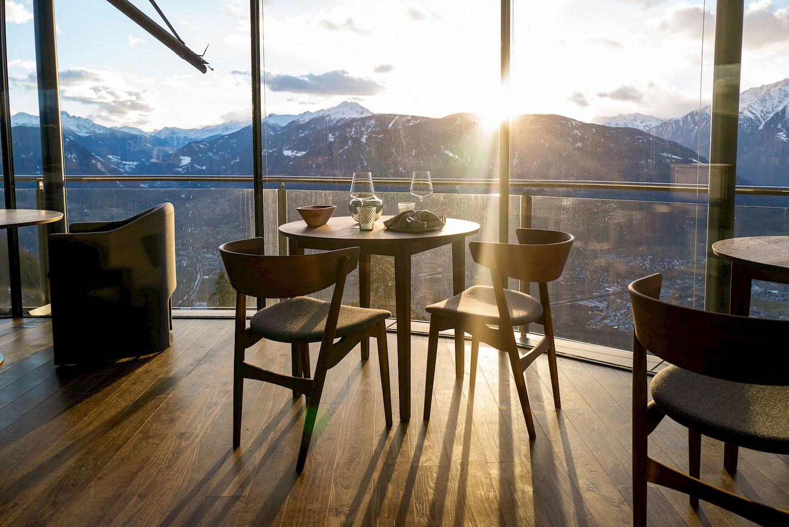 Con la ristrutturazione abbiamo reso la zona d'ingresso più leggera e libera, anche la cabina del vino ora trova il suo posto lì. Abbiamo dato struttura al ristorante classico con molte panchine e un bar aperto. Il ristorante Panorama risplende con calde tonalità di legno massiccio e nuovi mobili. Il prezioso pensiero "meno è più" è stato decisivo per noi. Sempre con la consapevolezza di incorporare le influenze della natura. La solida pietra di porfido riflette la forza e la permanenza di questo ambiente. L'uso di materiali caldi come la quercia, il lino, la pietra naturale, l'artigianato individuale e i suggestivi elementi neri nella casa creano un meraviglioso contrasto. La combinazione tra mobili classici di design e legno naturale crea un'atmosfera armoniosa. Le facciate delle finestre per la vista impressionante erano un "must-have" assoluto. La sala da tè con il suo camino aperto, la nuova sala del camino e il MIRAMONTI Bar ne beneficiano particolarmente.