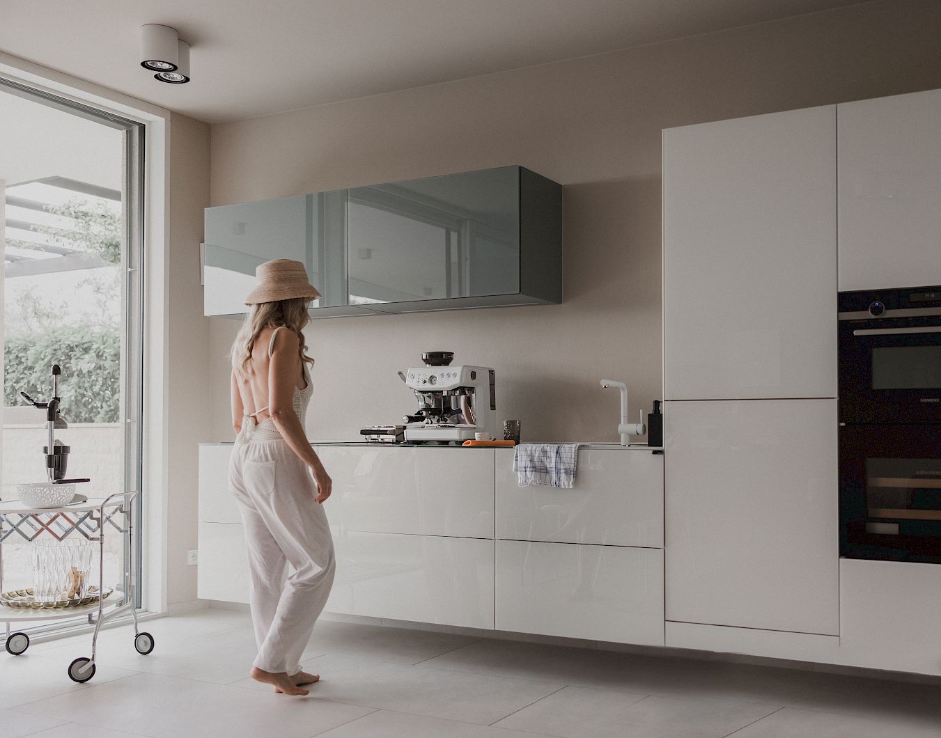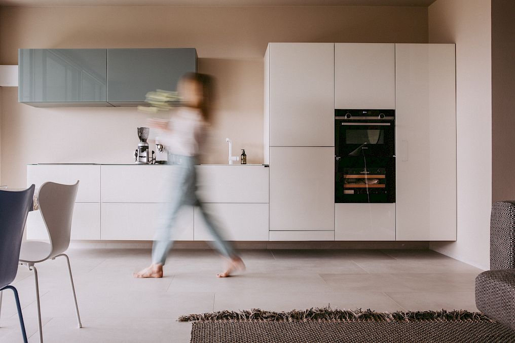 La prima sensazione quando si entra nell'appartamento è semplicemente - wow! Ci è piaciuto subito lo stile dell'appartamento. I mobili dell'azienda italiana Lago sono molto eleganti e si adattano perfettamente all'architettura moderna dell'appartamento. E la vista dalla terrazza sul lago è semplicemente fantastica.