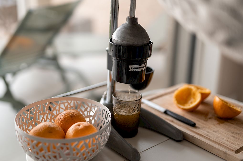 Uno spremiagrumi Hamilton Beach e un frullatore Smeg per bevande rinfrescanti.