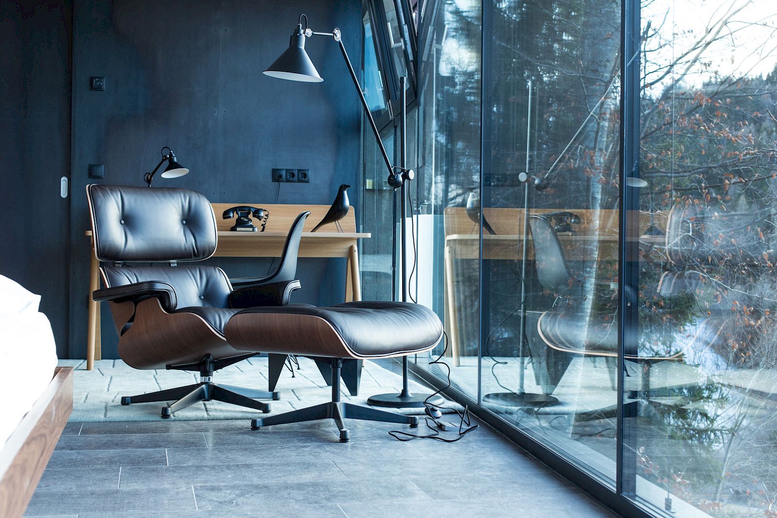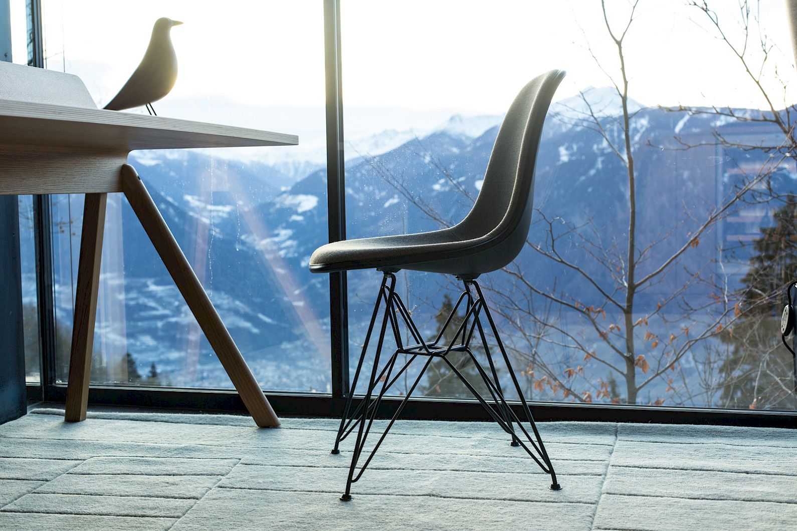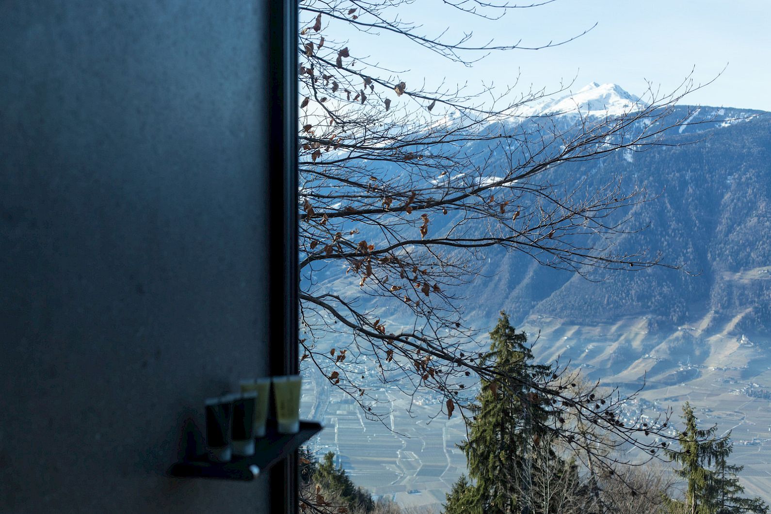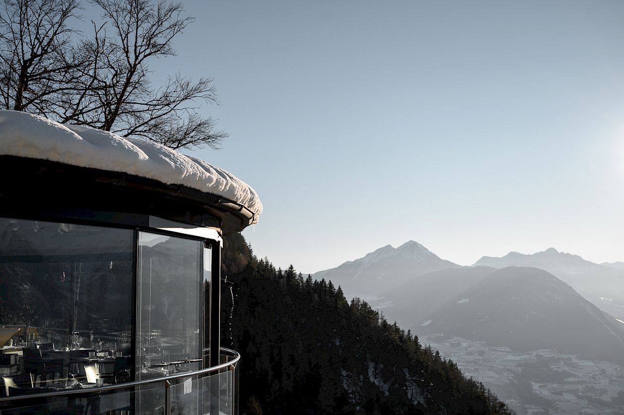 Based on "Q", the inventor of 007, the new masculine suite with 42 m² is situated on the ground floor built over rock. The floating wooden King-Size bed is vis à vis with a great view over the mountains through the 12-meter wide frameless glass window. Wake up with a breath-taking view. Other special features are the Vitra Design furniture, the walnut bar cabinet, wallcoverings with hand-tanned leather, local porpyry stone flooring and the balcony that rises above the steep slope. The modern bathroom with walk-in shower has an extraordinary view over the city of Merano – take a shower enjoying nature.