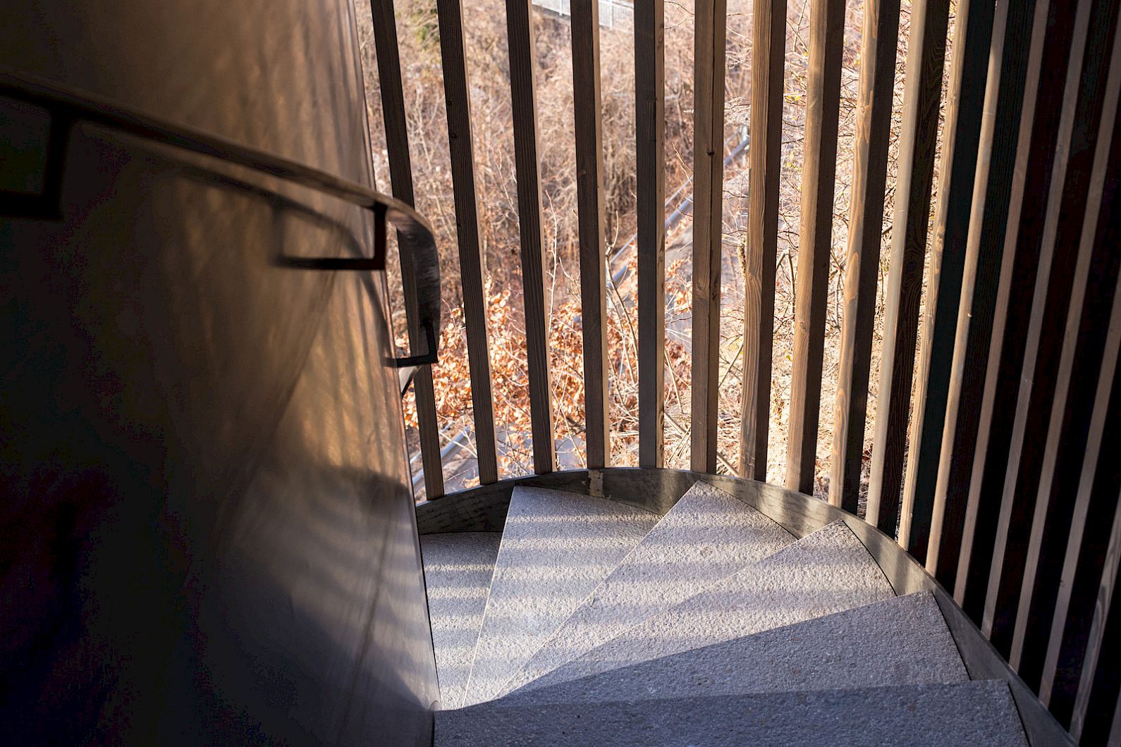 Through the Secret Door and using the handmade spiral iron stair you can reach the Q-Suite.