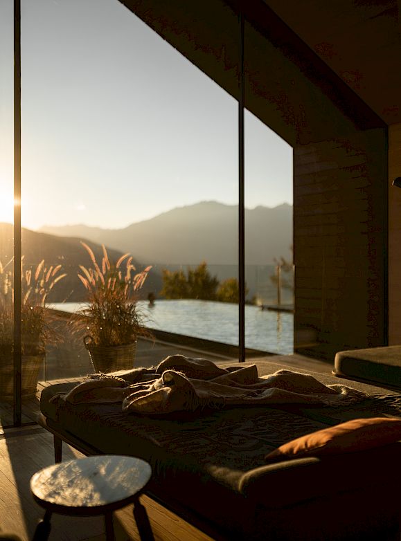 Intimate and liberatingly open. Close to nature, centring and purist. We are opening our private spa 1.230 metres above sea level. It appears to float high above Merano and its rural idyll. This is what inspired us to create treatments and beauty rituals with perceptible added value, and retreats with an exceptional aura and incomparable views. Relaxation. Providing space for the development of new thoughts and ideas. Snuggling. Returning to yourself. And reconnecting with the rhythm of nature.