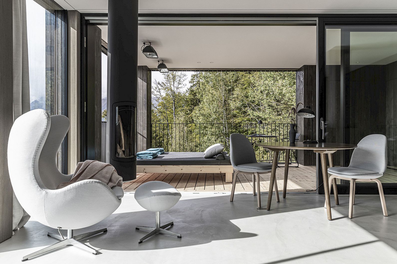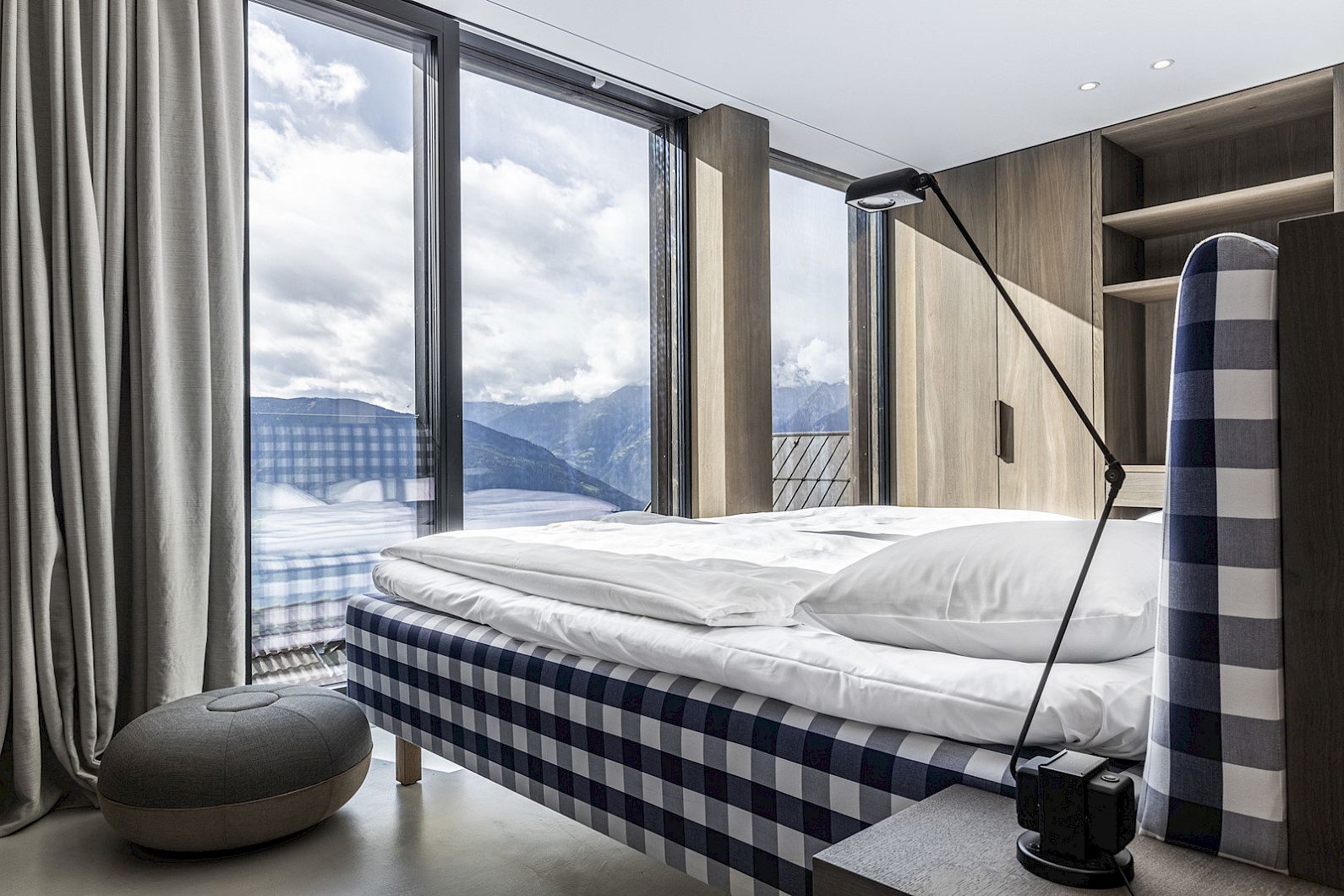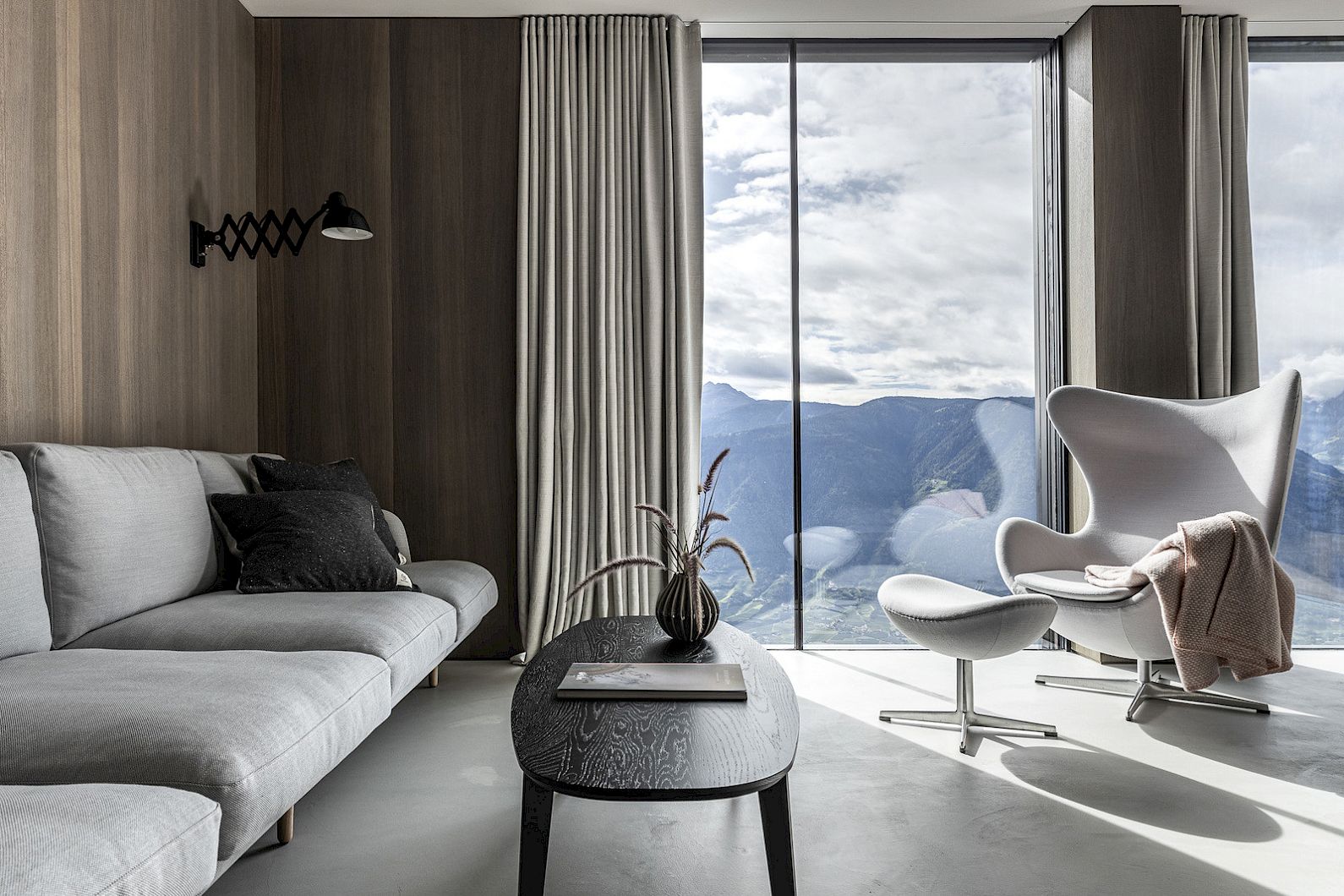 Ogni dettaglio della Nordic Design è stato scelto con cura. L’enorme letto Haesten della camera da letto è stato prodotto a mano. La spettacolare vista sulla roccia che si può ammirare dalla vasca da bagno. La Sky House supera l’ordinario. E’ una bellissima dimora senza tempo arredata con mobili e luci Fritz-Hansen. Una scalinata collega la zona notte e il bagno allo stile e alla raffinatezza del salotto. Dal camino aperto si può godere della vista straordinaria sul Monte San Vigilio, sulla cascata di Parcines e molto altro... Su richiesta solo per voi un tavolo da colazione apparecchiato con abbondanza. E poi? A colazione Prosecco nella Hot Pot in acciaio inossidabile sulla terrazza privata con sedie a sdraio in legno fatte a mano.