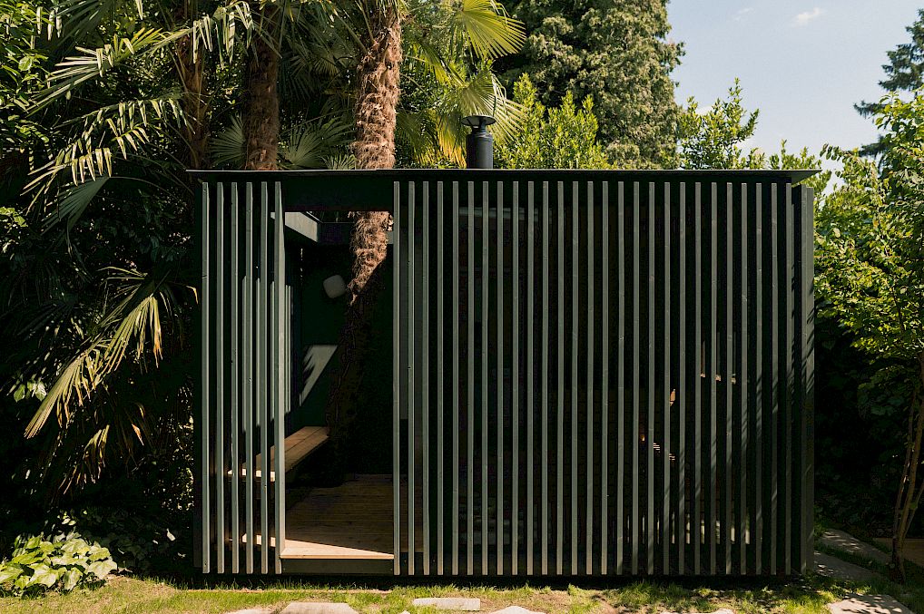 È presente una sauna finlandese a legna all'aperto, progettata da Harry Thaler, con doccia esterna.
