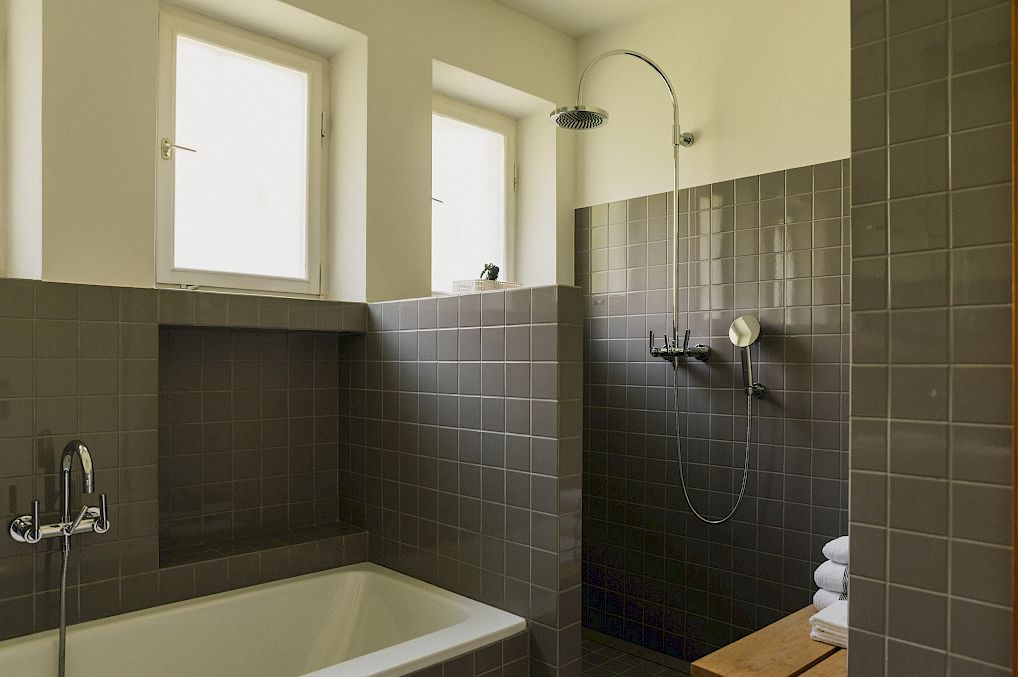- Bagno ben fornito con prodotti altoatesini a base di fieno di montagna o legno di luna di Val Sarentino.